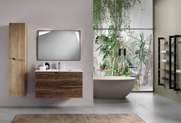 Mobile Bagno sospeso Bora Ciciriello cm.100 con Specchio, Lavabo e Lampada a led